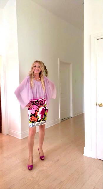 Now that I'm closer to leaving my fifties behind and nearing the sixties, I prefer my skirts to be a little longer. I think this just-above-the knee is perfect for me.